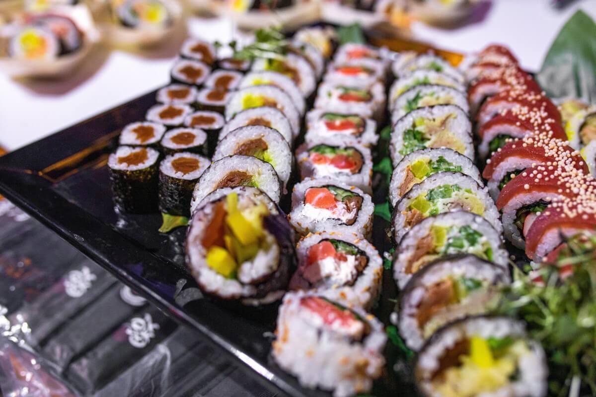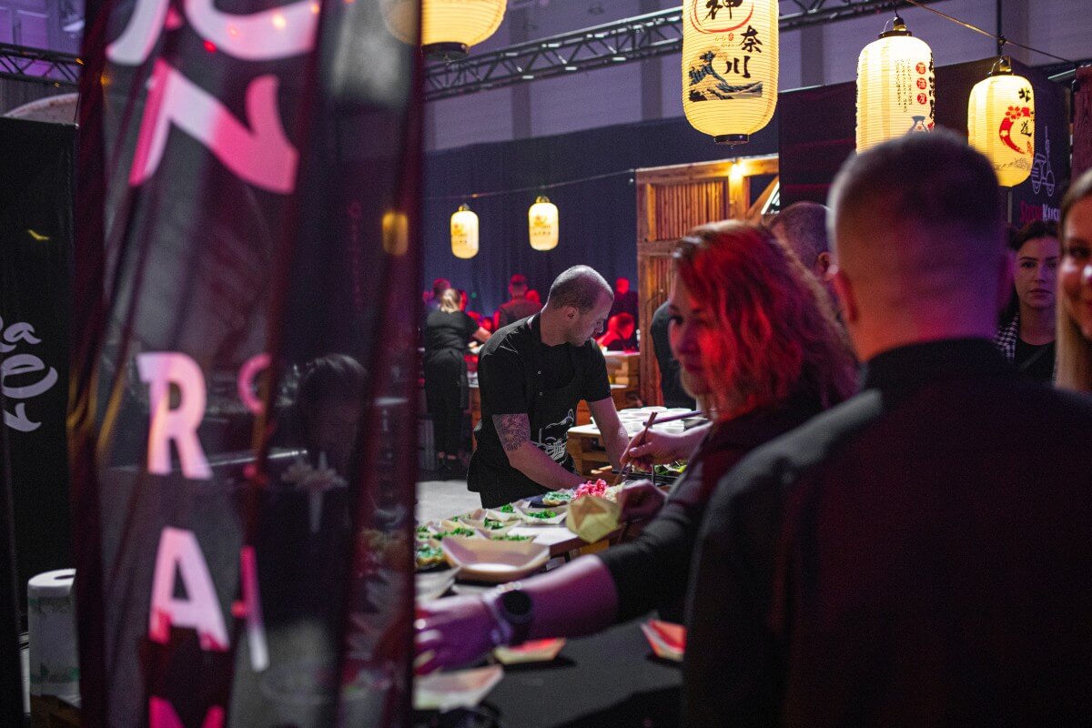 Sushi rolls rolled before your eyes by our sushi Masters, aromatic Ramen, steamed Bao buns and totally NEW️ Sando sandwiches on toasted bread from the Montag company from Łódź.
